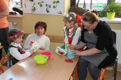 W drugiej części zajęć odbyły się warsztaty plastyczne, na których dzieci wykonały razem z rodzicami wielkanocną kurkę, pisankę oraz koszyk. Wspólna praca dostarczyła wszystkim wiele radości i satysfakcji. Serdecznie dziękuję rodzicom za przygotowanie dzieciom strojów i tak liczne przybycie na zajęcia otwarte.