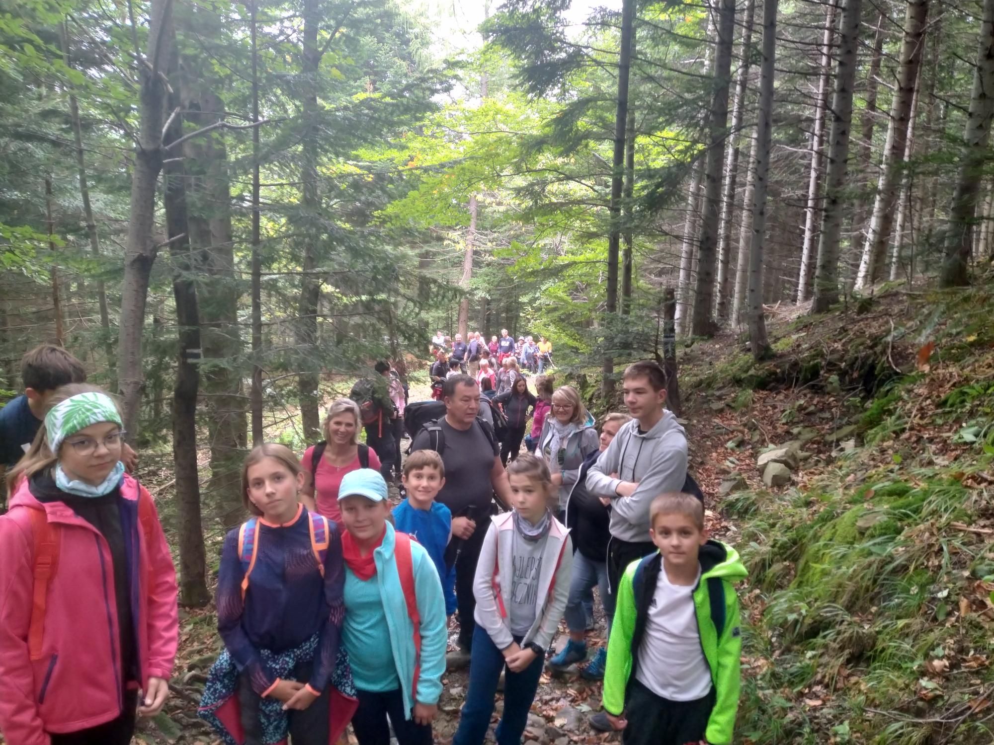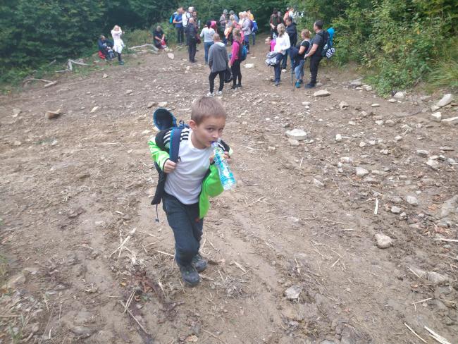 Tym razem była to pierwsza wędrówka górska pamięci naszego wspaniałego przewodnika Bogdana Pudełko. W wędrówce uczestniczyło 51 osób w tym 9 dzieci, najmłodsza uczestniczka to dwuletnia Tosia. Z Pisarzowic wyruszyliśmy o 7 rano autokarem przez Wadowice, Suchą Beskidzką do Skawicy , do najwyżej położonego przysiółka Sucha Góra (625 m n.p.m.).