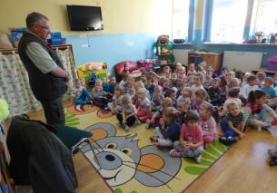 Zajęcia edukacyjne przeprowadzone przez pana leśniczego w Przedszkolu Publicznym w Wilamowicach