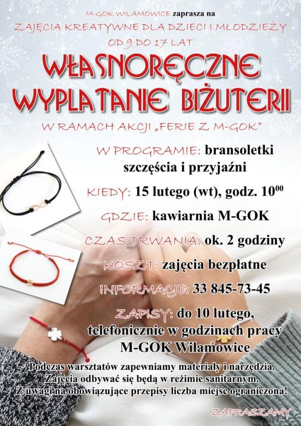 Zajęcia kreatywne dla dzieci i młodzieży od 9 do 17 lat "Własnoręczne wyplatanie biżuterii" w ramach akcji "Ferie z M-GOK"