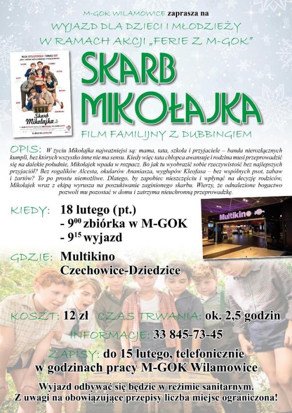 Zapisy na wyjazd do kina na film "Skarb Mikołajka" w ramach akcji "Ferie z M-GOK"