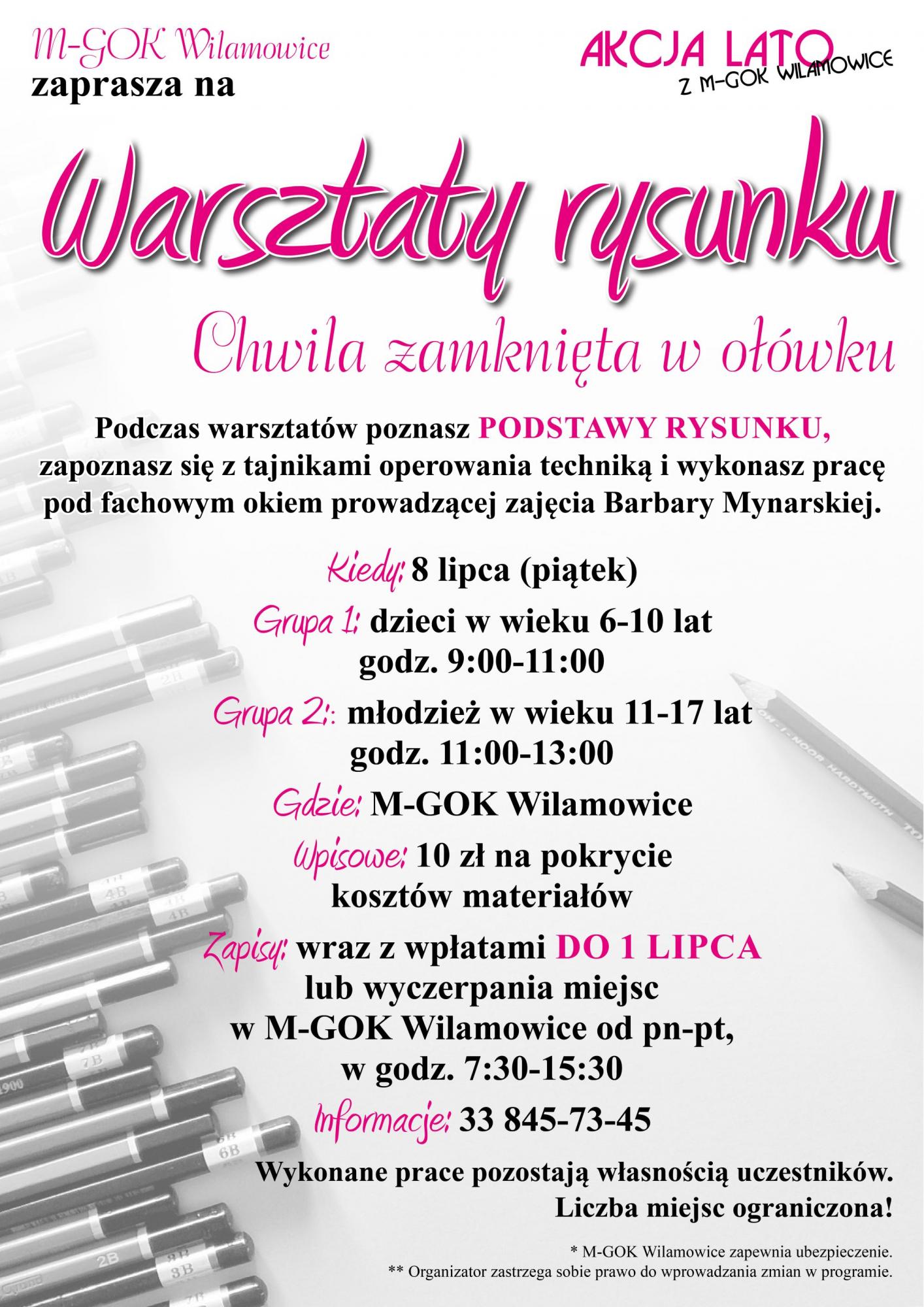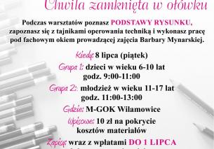 » Zapraszamy na warsztaty rysunku pod kierunkiem artystki Barbary Mynarskiej - zajęcia 8 lipca