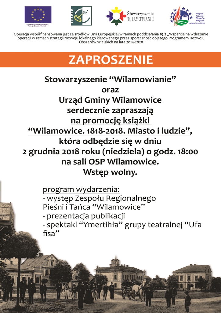 Zaproszenie na promocję książki "Wilamowice.1818-2018. Miasto i Ludzie"