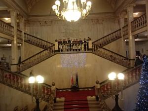 W Gmachu budynku rozbrzmiewał śpiew kolęd i pastorałek .Nasz Region Podbeskidzia reprezentowały zespoły: „Rajcusie” z Rajczy oraz Zespół Regionalny „Zasolanie” z Zasola Bielańskiego. Także wokół westybulu ustawione były stoły z potrawami świątecznymi, głównie tradycyjnymi, były to np. drobne ciasteczka cieszyńskie, oscypek z żurawiną, kluski z miodem po wilamowsku, paszteciki z mięsem i grzybami, kwaśnica na łopatce, bigos, zupa z kwaczka, żywieckie serduszka piernikowe, pierniczki pisarzowickie, serniki, kompot z pieczek, fasolonka wigilijna, nalewka owocowa, chleb ze smalcem i ogórkiem kiszonym. Z innych regionów Śląska panie „ prezentowały np. moczkę, makówki, szpajzę, kołocz śląski, kapustę z grochem po częstochowsku, ciapkapustę czy pierogi z kapustą i grzybami. Były też stoiska z ręcznie wykonanymi ozdobami świątecznymi, a wszystko to za sprawą Kół Gospodyń Wiejskich naszego województwa. Nasz powiat jak i Gminę Wilamowice reprezentowały KGW z Pisarzowic, powiat cieszyński KGW z Dzięgielowa, a Żywiecczyznę KGW z Soli oraz ze Zwardonia.