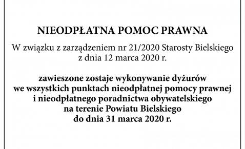 Zawieszony dyżur Nieodpłatnej Pomocy Prawnej